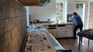 So haben wir einen wunderschönen Fliesenspiegel in unserer Küche gefliest, der´s erst richtig gemütlich macht.